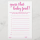 Simple "Devinez que la nourriture pour bébé" baby shower ou genre révèle une carte de jeu de devinettes de fête avec un script amusant et décontracté écrit à la main. Le design classique comprend une superposition de la typographie de citation à la main moderne. Pour d'autres couleurs ou produits correspondants, veuillez visiter le magasin JustFharryn Zazzle, ou contacter le concepteur, c/o Fharryn@yahoo.com Tous droits réservés. #bohochic #zazzlemade