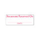 This simple rubber stamp design features the messages "Document Received On" and a line where a date could be written. It might be used to track when a piece of mail or a document was received at the office of a business or some other organization.