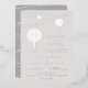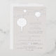 An original illustration of elegant and chic double happiness lanterns in modern simple minimalist kanji / chinese writing hanging on strings of fairy lights, on a light ash grey colour background, with real foil pressed, wedding invitation design. A stylish and classy chinese / asian / oriental themed outdoor / garden wedding design for the contemporary chinese couple.