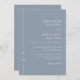 Simple, elegant and tasteful, this classic dusty blue wedding invitation design features a thin line border along the left edge with the bride and groom's monogram initial. A combination of timeless elegant serif font paired with a traditional script font is used for the bride and groom's names and other accent text. You can add, remove or adjust the placement of the text to suit your needs. The ever popular dusty blue background with white text adds to the clean simplicity of this design and is a lovely choice for weddings in any season of the year. The reverse side of the invitation has a text template for including a QR code to provide your wedding guests with an easy method of RSVP and to view details and plans surrounding the wedding. These invitations are available in both printed and paperless digital download formats.
