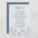 Unique simple seating chart card featuring romantic and elegant dusty blue flowers on light blue background