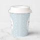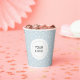 This minimal paper cup features a simple logo and brush confetti pattern on a dusty blue grey background. Add your logo and customize the text with your information. You can use this personalized cup at your business place, shops, company event or, etc.