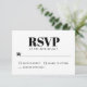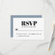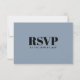 With a sense of modern minimalist simplicity, this stylish simple wedding response card design is presented in the popular colour choice - dusty blue. The front of the card has a white background with black text and the back of the card has a dusty blue background with black text. Trendy bold typeface spells out RSVP. Personalize the required response date with your required date.