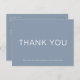 Modern and Simple Dusty Blue Thank You Postcard. The font colour and type can be changed via the edit menu. You can also change text and background colours on either side if you wish.