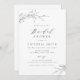 Minimalist bridal shower invitation features rustic hand illustrated botanical leaves and modern trendy script in black and white, simple and elegant, great for summer rustic wedding, spring botanical garden wedding.