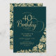 Simple Elegant 40th Birthday Emerald Green Gold Invitation