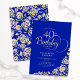 Simple elegant 40th birthday party invitation in royal blue and gold. Classy design featuring roses, faux gold foil and typography script font. Trendy invite card perfect for a stylish female bday celebration. Personalize with your own details. Can be customized to any age. Printed Zazzle invitations or instant download digital printable template.