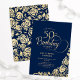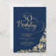 Simple Elegant 50th Birthday Navy Gold Roses Invitation