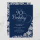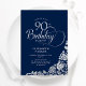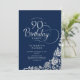 Simple Elegant 90th Birthday Navy Silver Roses Invitation