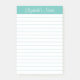Simple Elegant Aqua Lined Personalized Post-it Notes
