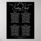 Make your wedding reception beautiful with this seating chart. It features a simple yet elegant design with light grey text on a black background with a silver faux foil floral border. This chart shows table assignments so your guests will have an easy time finding the right table.