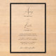 Simple Elegant Black & White Border Script Wedding Acrylic Invitations
