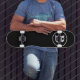 Elegant black and white monogram skateboard. Perfect for birthday. Personalize with your initial and name.