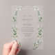 Elevate your wedding with the Simple Elegant Botanical Wedding Acrylic Invitations design, a timeless fusion of a verdant watercolor floral garden and refined sophistication. This modern classic design features delicate botanical elements of intertwined lush eucalyptus and graceful white florals, evoking the romance of nature in every season—spring, summer, fall, or winter.