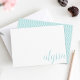 Our chic personalized stationery flat cards feature your name in elegant pale sea green aqua calligraphy script lettering at the lower right corner. Cards reverse to a delicate trellis pattern.