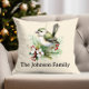 Simple Elegant Christmas Floral Bird Throw Pillow