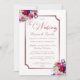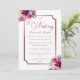 Simple Elegant Coral Pink Floral Script Beautiful watercolor burgundy deep coral red, violet, and pink floral design with metallic pinkish coral frame. Burgundy Pink Red Violet Floral Rose Wedding Invitation. Customize with your wedding text. The design features the bride and groom's names in an elegant great vibes script font. Shown in black and white but can be customized to your wedding colours for the text and background. Add any other graphics, text, or monograms to your personalize this template.