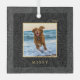 Simple Elegant Custom Pet Name Photo black floral metal Christmas ornament with your pet’s name in an elegant gold serif font.