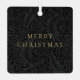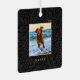Simple Elegant Custom Pet Name Photo black floral metal Christmas ornament with your pet’s name in an elegant gold serif font. The words “Merry Christmas” in a gold serif font on the back.