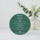 Simple Elegant Emerald Green Round Wedding Dinner Menu