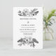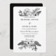 This simple and elegant wedding invitation is perfect for a modern event. It features hand-drawn flowers and leaves surrounding a formal font with a classic feel. The colour scheme includes black and white. It's modern, minimal, unique, and pretty; the perfect design for your special day.