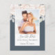 this design features a wedding save-the-date photo, a floral photo with elegant simple blush, a botanical engagement picture couple, a budget calligraphy script font, with brush watercolor greenery foliage, for an engaged typography minimalist, modern brush script, with floral rose greenery botanical elegant, with watercolor flower foliage flower, a eucalyptus succulent leaves, a blush grey rose flower bouquet