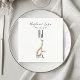 Simple, minimalist, gold, black and white wedding paper napkin.