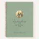 Modern Minimalist Gold Metallic Emblem Sage Green Initial Name Girly Script Professional Title Role Custom Text Template Plain Sage Green Background Monogram Notebook
