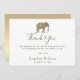 Simple, elegant, classy white wedding thank you card with gold foil monogram elephant - symbol of love, fertility and good luck.