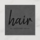 Elegant SQUARE customizable business card template with texture grey background. Minimal elegant design, perfect for hair salon, hairstylist, hairdresser.