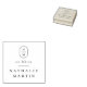 A simple personalized book stamp design with your initials in a rounded frame. Below, "ex libris" is printed in classic serif typography, followed by a chic horizontal line divider, and your name in capital letters. This is the wooden rubber stamp - choose the handle and ink pad options according to your preference! A self-inking version of this stamp is available in my store. View the collection linked on this page or visit our store for more custom book stamps.