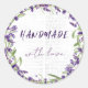 Simple Elegant Lavander Frame Handmade with Love Classic Round Sticker