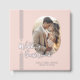 A uniquely elegant wedding guest book with real silver foil and modern styling on a blush pink background. The design features an oval photo template for including your selected photo. Wedding Guest Book text is spelled out in modern script typography and is accented with simple line graphics. Personalize the text template with your names and wedding date. The spine of this guest book also has a text template to personalize as you like.