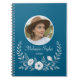 Create a stylish and personal notebook with this elegant design. Featuring your uploaded photo in a circular frame( fill it with youown photo, name and year ) and a delicate white floral wreath on a sophisticated teal background. Perfect for journalling, note-taking, or planning, this personalized spiral notebook makes a thoughtful and unique item for yourself or a special gift.