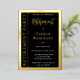 Exuding sophistication and grace, this retirement party invitation blends simplicity with elegance, creating a timeless impression for both the retiree and their guests. Its minimalist design is thoughtfully crafted to convey both professionalism and warmth, making it the perfect choice for celebrating this significant milestone. The striking black background, complemented by genuine gold foil accents and delicate white text, adds a touch of luxury and refinement. This elegant design ensures your celebration will be memorable, setting the tone for a tasteful and unforgettable event. Design by Holiday Hearts Designs (rights reserved).
