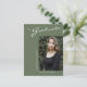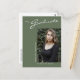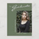 This modern elegant yet simple graduation announcement postcard, features design elements of modern text fused with elegant calligraphy script. The graduates single photo highlights the front of the card while the back of the card offers personalized text spaces for information about the graduation and future journey. White writing on stylish sage green or easily customize the background to a colour of your choice. To see more items like this, visit my store here at "www.Zazzle.com/LakeViewCardCo". Thanks