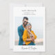 This 2 photo save the date announcement feature a simple yet elegant design on a white background. The front offers a square photo with the names appearing in a trendy handwritten style text. The backside offers an additional photo with extra text for more wedding details.