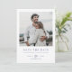 We've added some sample text on the back for you to edit according to your needs. Instead of entering your own wedding website address, you might decide to delete our sample website address and the line above it without replacing those parts of the design. And instead of editing our sample text on the back with your own message, you can also simply delete all of that text and leave the back of the card blank except for your photo, perhaps to hand write your own message later, or to send without any text on the back. You can also delete our sample photo without replacing it if you don't want to add a second photo in addition to the one on the front. The default paper type, matte, has a soft warmth to it and resists smudging, so it's a great choice for writing your own message. You can edit this and choose semi-gloss or upgrade to another paper type instead. In any case, please do remember to delete all of our sample text on both sides as well as our sample photos. Customize this stylish modern two photo wedding save the date flat card template with the intuitive editing tools, your favorite photos and your inspiration and make it uniquely yours!
