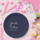 Simple Elegant Modern Script Navy Blue Paper Plate