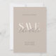 Wedding save the date in taupe beige colour featuring simple modern typography design.