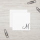 Modern square business card with your single letter monogram in black script at the bottom right corner, over a white background. Use the template to add your name, title, phone number and social media username to the back. This design is great for a makeup artist, hair stylist, event planner, interior designer and more.