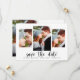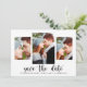 This modern save the date card is perfect for three of your favourite engagement photos in the front, and it has an additional photo on the back of the card.