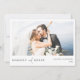 This simply chic newlywed Christmas card template features an elegant, minimalist, modern design. The front features your first names and year under your favourite photo and a 'MARRIED and MERRY' message conveyed with a striking blend of two distinct fonts, with 'and' in a light, flowing script between the other two words, which are in upper case with a bold, crisp formal look. The 'MARRIED and MERRY' part of the design is in black and can't be altered. When you edit the front to show your own names and year, you might change the colour of that text to a certain colour or something else instead of the default black, according to your taste. And of course when you enter your own names, you might use a different format such as you first names and last name, or 'Mr. and Mrs......', etc. On both sides we've made the background transparent to let the colour of the paper simply serve as the base tone. You can change this by picking a specific colour for the background on one or both sides in the editing tools if you'd like. The default text colour on the back is black, but you can change this if you prefer another colour. We've put some sample text on the back for you to replace with your own message as you see fit, but please don't feel restricted by this. If you prefer delete our sample text entirely and keep the back totally blank so that you can write a handwritten note on each card instead, you can do that. Or you might want to replace our text with your own message of gratitude and your own closing and then hand sign your names when you receive the cards. In any case, please do remember to remove all of the sample/placeholder text on both sides as well as our sample photo! We've chosen matte rather than semi-gloss as the default paper choice, as it is well suited to writing your own message on and won't smudge. You can of course change this to semi-gloss, or you might consider upgrading to something with a texture such as zazzle's 'Laid' or 'Felt White', which can add a feeling of warmth and depth. We hope you'll enjoy experimenting with various aspects of this stylish modern photo newlywed holiday card's appearance and make it uniquely yours with the intuitive design tools, your photo and your inspiration!