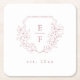 Simple Elegant Pink Cherry Blossom Monogram Crest Wedding Square Paper Coaster