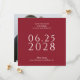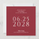 A simple, elegant and tasteful wedding save the date card in a beautiful rich red with light ecru text and features a photo of the happy couple on the back side of the card. The text template is easy to fill in with your info and the date is shown in large bold text to aid your future wedding guests in planning for your big day. The unique square shape of this card adds modern style and leaves a lovely impression for your recipients.