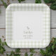 Simple Elegant Sage Green Gingham Baby Shower Paper Plate