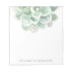 Modern and trendy notepad with a large sage green watercolor succulent at the top and your name at the bottom over a white background. A personalized notepad makes a great thank you gift for clients and is also perfect for the business professional such as a hair stylist, makeup artist, beauty salon, interior designer, event planner and more.