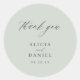 Elegant simple minimalist sage green wedding favour thank you sticker featuring a classy stylish chic trendy calligraphy script. ++++++++++++++++++++ Easy to personalize with your details! Suitable for pine tree forest destination weddings.
