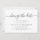 Modern script "change the date" in black and white, with optional couple's picture on the back, simple and elegant, inform your wedding guests the updated information with this announcement.