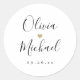 Modern minimalist script couple's names and event date, simple and elegant. great personalized favour stickers.